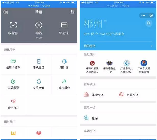 3、 关注方式三:通过微信城市服务进入。打开微信app—点击“我”—点击“钱包”—选择“城市服务”。