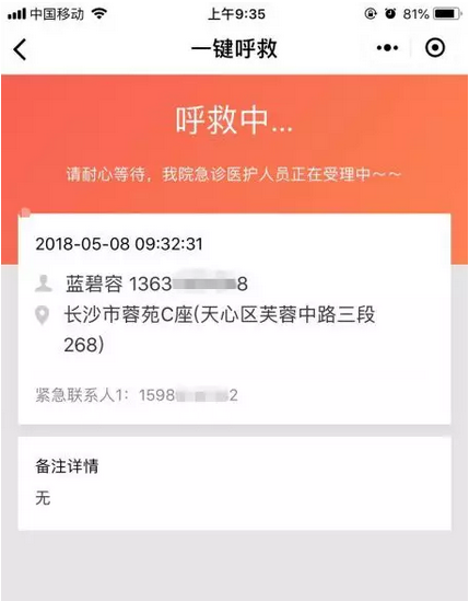 如遇到有人突发疾病,拨打120,说不清楚所处位置怎么办? 或家里老人突发疾病,自己又不在家里又怎么办? ...... 不用担心,“微信微急救平台”帮助您! 一般我们遇到突发情况,下意识中都会选择拨打120热线,但传统的120急救呼救方式,长期以来存在病人描述位置信息模糊、深夜出诊医务人员找不到需急救的病人、危急重的病人得不到及时有效的救治、老人家突发疾病不懂如何呼救及救护车上未安装GPS等缺点。 为解决或缓解以上缺点,近期,我院联合建设银行及海鹚科技一起正式推出一款便民服务利器——“微急救”小程序,这是基于微信开放能力,由患者呼救应用、急诊调度室应用及hifond硬件智能监测三部分结合的小程序。 这款小程序在我院院前急救领域得到应用,是对传统急救模式的完善,更是为广大市民提供的一种更高效、更准确的互联网急救服务。 使用“微急救”广大市民只要通过关注我院公众号进入“紧急呼救”程序,即可获得“一键呼救”及“实时定位”的功能服务。