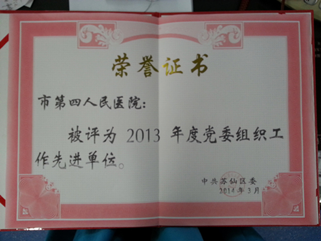 | 我院被评为2013年度区党委组织工作先进单位 |