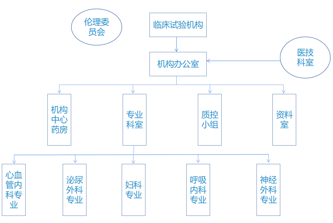机构下设药物临床试验机构办公室,设有机构办公室主任、副主任、秘书、质控员、药品管理员与资料管理员,负责药物临床试验工作的日常管理。