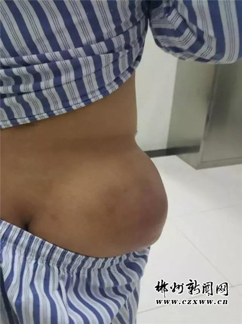 最近该院普外科接诊了一位病情特殊的年轻男性患者,医生接诊时见患者右侧臀部明显隆起,整个身体给人一种违和感。只见患者表情沉重,满脸愁容,医生问他有哪不舒服时,患者叹了一口气,指着右侧臀部明显隆起的包块说:“就是这个东西,长了十几年了,治也治不好,好烦的。”接诊医生对患者病情进行了仔细询问,了解到患者姓李,宜章县人,今年 27岁,10几年前就发现右侧臀部长了一肿块,且逐年增大,也曾到过多家二、三级医院诊疗过,均不见效果,医生建议转省级医院进一步治疗,因肿块不痛不痒,加上觉得上省城麻烦,患者也就再没放心上。