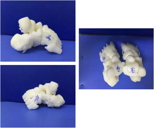 | 2017年11月20日,郴州市第四人民医院骨科主任谭宜昌带领其团队应用3D打印技术成功为一双侧跟骨粉碎性骨折患者实施了手术,术后患者恢复良好。 该患者为一年轻女性,自高处坠落导致双侧跟骨粉碎性骨折,骨折移位较大,为复杂型骨折。对于该疾病使用过去传统影像学方法难以直观了解骨折情况,尤其是年轻医生较难准确对骨折进行评估和分型。模拟手术多在二维图纸或者术者的脑海中进行,在实际手术操作中也只能凭经验进行操作,凭经验选择置入物的规格,并现场将置入物进行折弯、剪裁,调整成较为合适的尺寸。且螺钉方向也只能依靠医生的解剖知识及经验进行确定。这种经验性手术操作准确性较差,过程复杂,耗时长,透视多,创伤大。 而通过3D打印技术将患者术前跟骨CT平扫加三维重建产生的DICOM数据经计算机处理,修改后获得打印模型的标准格式数据,连接3D打印机,根据需要选择不同类型的3D打印技术进行三维物理模型打印。利用该项技术打印出来的骨折模型非常准确,为患者和医生提供了较为直观的触觉与视觉上的体验,能提高医生与患者及家属交流的效果,能为手术方案的设计和制定以及术前演练提供有力的参数和依据,需要多长的钢板,需要几颗螺钉,医生在术前就能心中有数。这不仅大大提高了手术的精确度,提高手术效果,而且还能有效减小创伤,减少术中出血,节省手术时间,缩短患者术后恢复时间,为患者节省医疗费用。