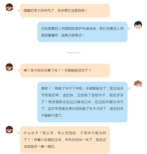 如果出现脑梗死,只要能在最短的时间之内(不超过4小时),将患者送至有救治能力的医院,不到一上午功夫基本治好就成为可能!