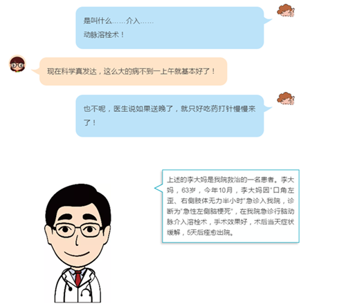 如果救治时间过晚,大脑已受到不可逆损伤,即使做了溶栓手术,效果也会大打折扣。所以医生常会对患者说:“治好您病的最重要的人不是我,是送您来医院的人!”