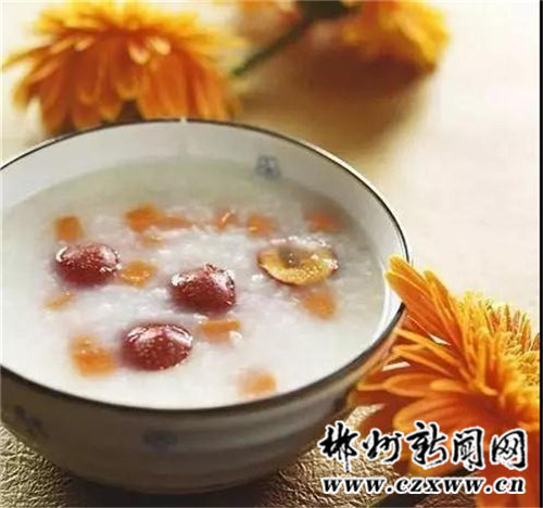 养肺为要:要多吃些滋阴润燥的食物,如银耳、甘蔗、燕窝、梨、芝麻、藕、菠菜、鳖肉、乌骨鸡、猪肺、豆浆、饴糖、鸭蛋、蜂蜜、龟肉、橄榄。此外还可适当食用一些药膳,如:参麦团鱼、蜂蜜蒸百合、橄榄酸梅汤等。 少辛增酸:秋天饮食要少食辛味食物,如:葱、姜、蒜、韭菜、辣椒等。在此基础上多吃些酸味食物,以补肝气,如:苹果、石榴、葡萄、芒果、樱桃、柚子、柠檬、山楂、番茄、荸荠等。 宜多吃粥:秋天早晨多吃些粥,既可健脾养胃,又可带来一日清爽。秋天常食的粥有:山楂粳米粥、鸭梨粳米粥、兔肉粳米粥、白萝卜粳米粥、杏仁粳米粥、橘皮粳米粥、柿饼粳米粥等。 【食疗方】