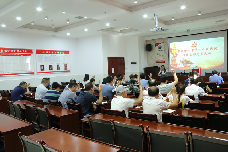 9月19日下午,中共郴州市第四人民医院行政支部召开全体党员大会,选举产生新一届支部委员会委员,会议由彭露同志主持。 会上,彭露首先宣读并通过了“行政支部党员大会选举办法(草案)”,由全体党员举手表决通过监票人名单,经行政支部29名党员通过无记名投票、差额选举的方式。最终,彭露、邓燕芬、彭丽华3名同志当选为行政党支部新一届委员会委员。会后,新一届支部委员会举行第一次支委会,选举产生了支部书记,并对支委进行分工。彭露同志担任支部书记,彭丽华同志担任组织委员,邓燕芬同志担任宣传委员,同时将选举结果上报医院党委。