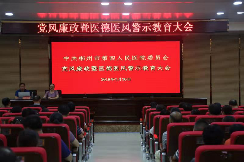 | 强化廉政警示教育 塑造良好医德医风 --郴州市第四人民医院开展党风廉政暨医德医风警示教育 |